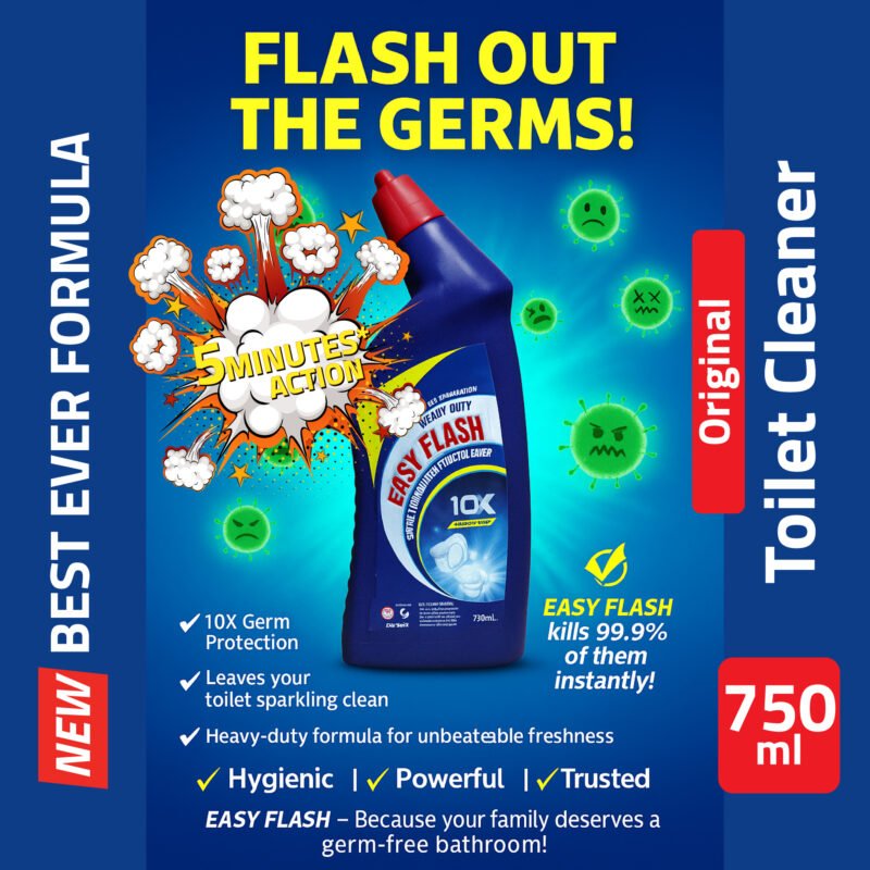 Easy Flash Toilet Cleaner Liquid 750ml Original Power Plus 10x Stronger, new & thicker formula kills 99.9% of germs